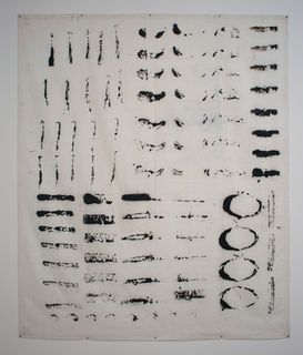 הבד המוכתם אשר קיבל את פנינו עומד כביטוי ראשוני לכל אלו, ומנכיח בפנינו את התהום הפעורה בין האדם לטבע. הוא מגלם את התמצית של השאיפה האנושית לסמן סימנים: להחתים, לנכס, לסדר, לאגור, לעצב, לתת שמות לתופעות על מנת להכיר אותן לעצמנו, להבטיח לעצמנו שיש סדר בעולם, ולשכוח מהמוות.